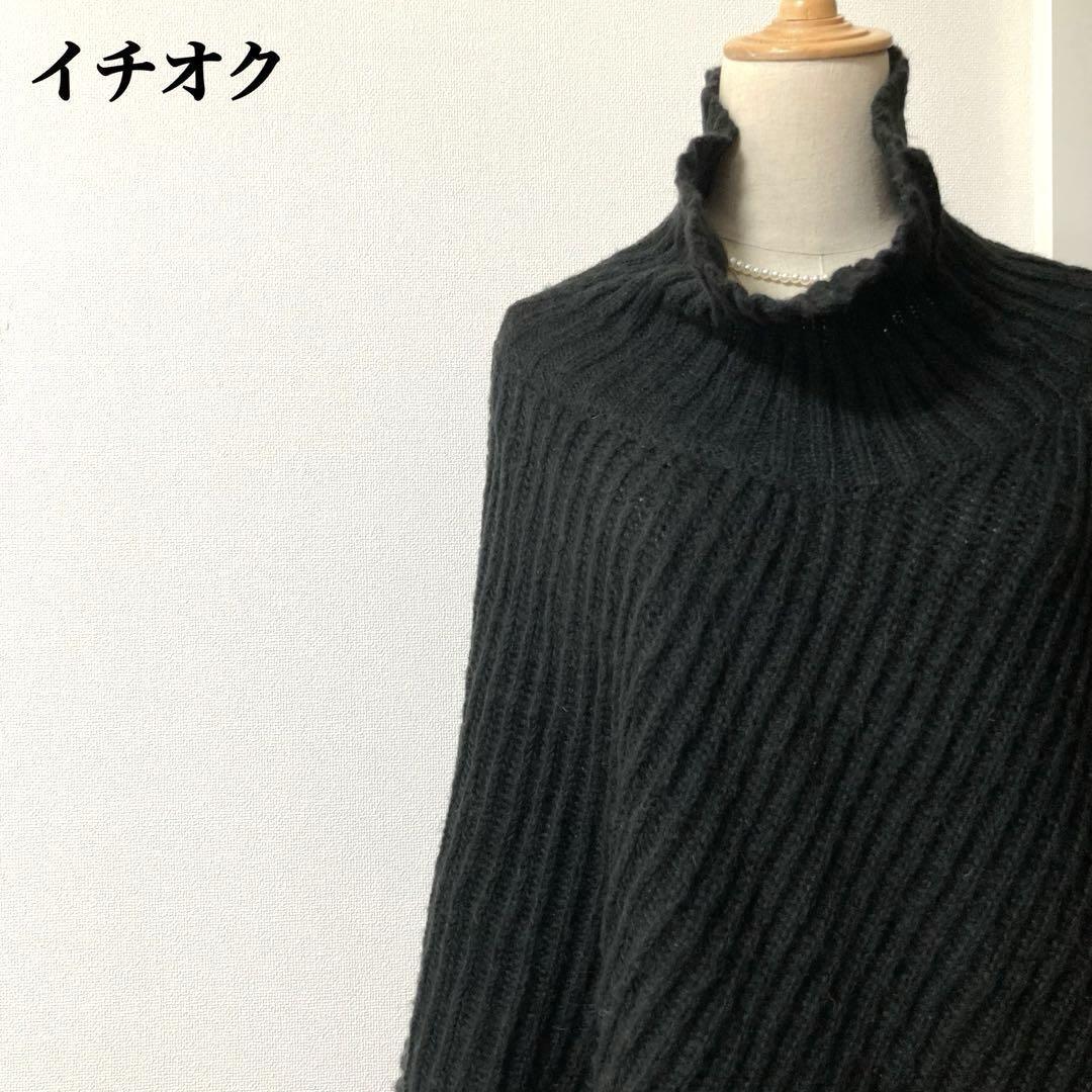 - T 人気 イチオク ポンチョスタイルニット タートルネック リブニット ブラック オーバーサイズ フリーサイズ
