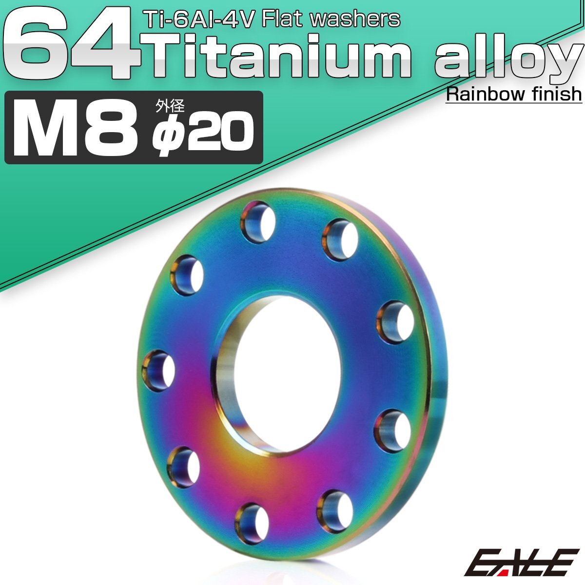 > チタンワッシャー M8 外径20mm 平ワッシャー ホールデザイン フラットワッシャー レインボー 虹色 JA1882