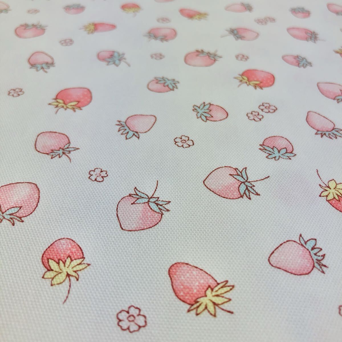 - 1m 日本製 可愛いいちごのオックス 生地 いちご柄 コットン オックス はぎれ