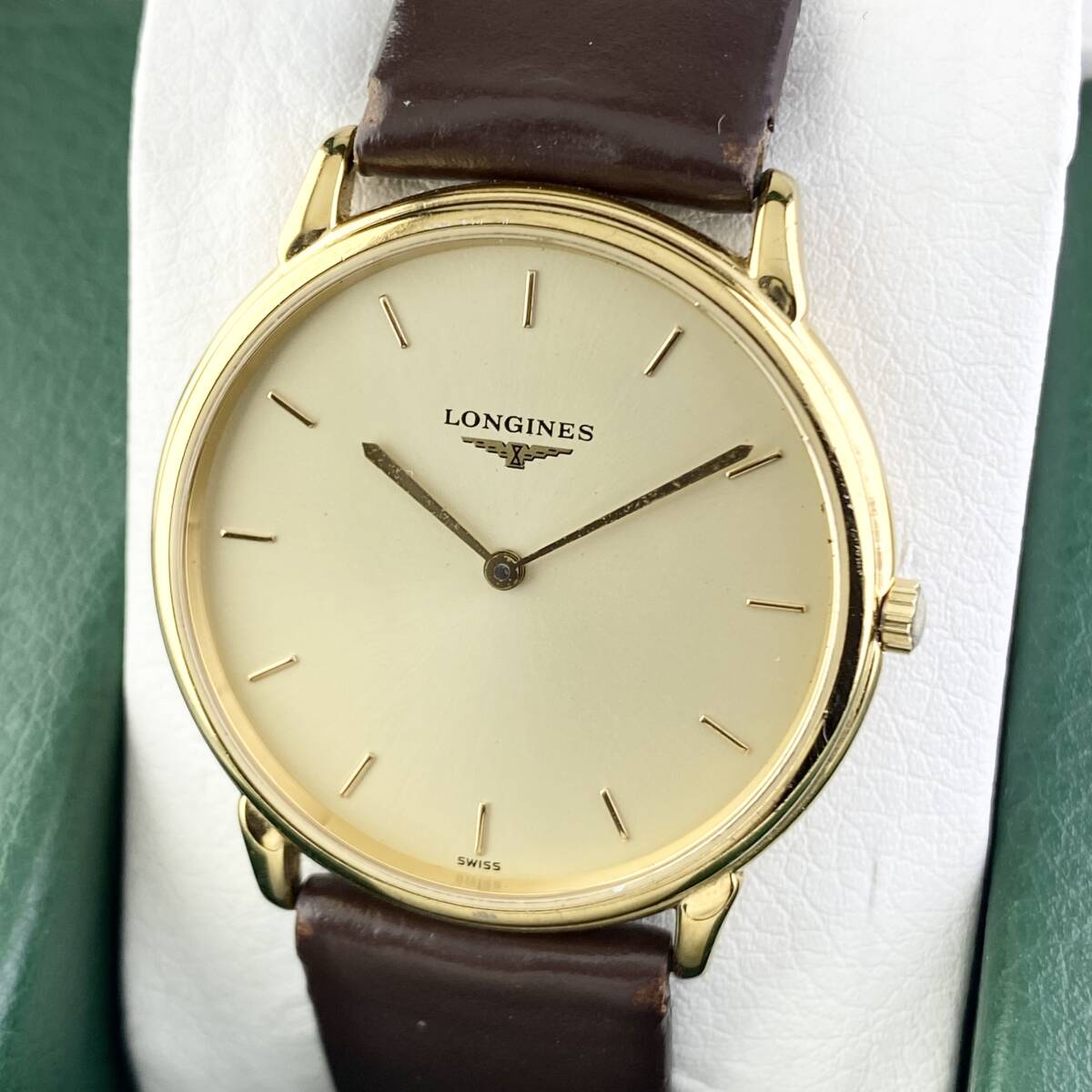 - 【1円〜】LONGINES ロンジン 腕時計 メンズ L4.676.2 ゴールド文字盤 ラウンドフェイス 可動品