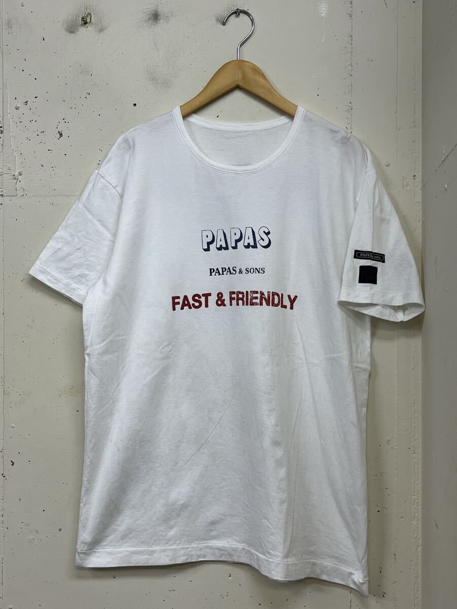 - papasパパス 半袖tシャツ 白 両面プリント 50 L 日本製