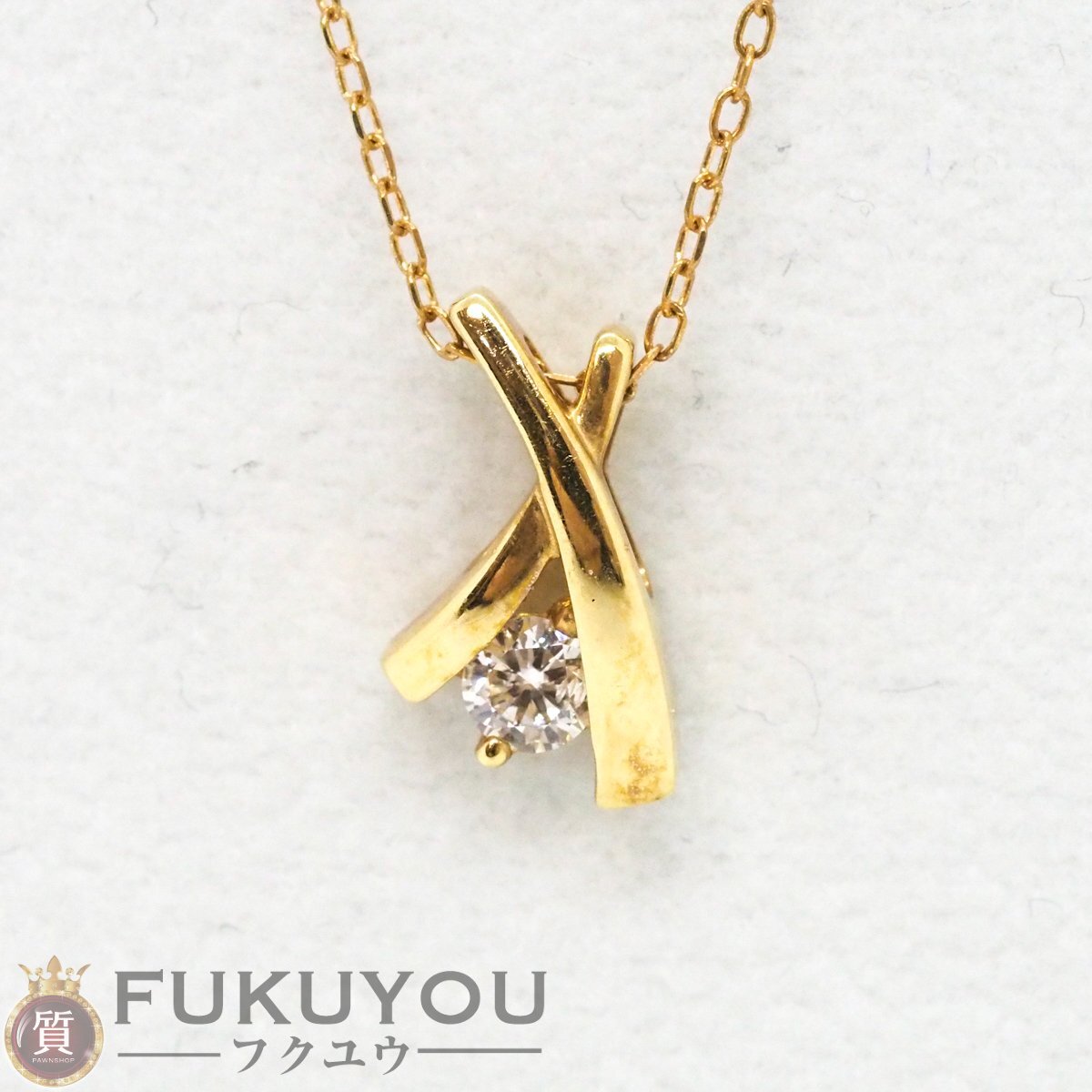 > K18 ゴールドチェーンデザインネックレス ダイヤモンドトップ 0.12ct 最大45cm 1.9g