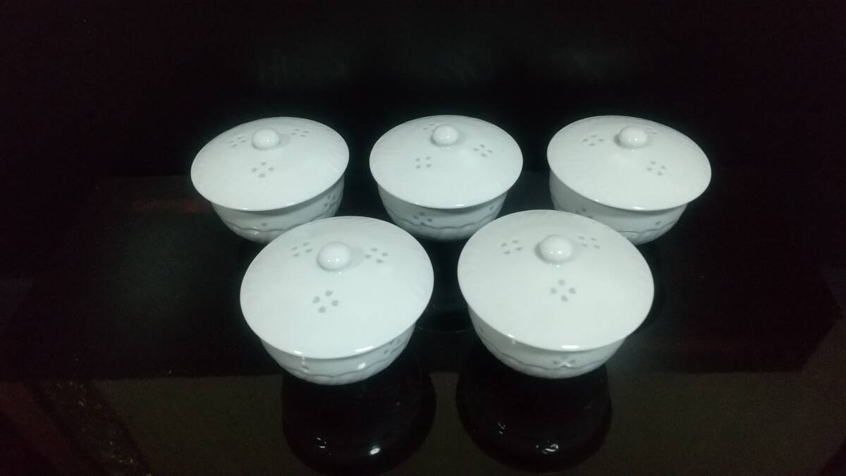 - 未使用品 有田焼 清秀作 汲出椀 湯呑 蓋付 5客セット 和食器 煎茶碗 茶器 蛍