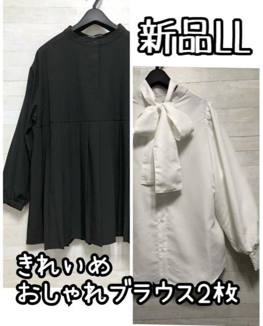 - 新品☆LL♪きれいめおしゃれブラウス2枚♪プリーツ&リボンタイ付♪☆Q472