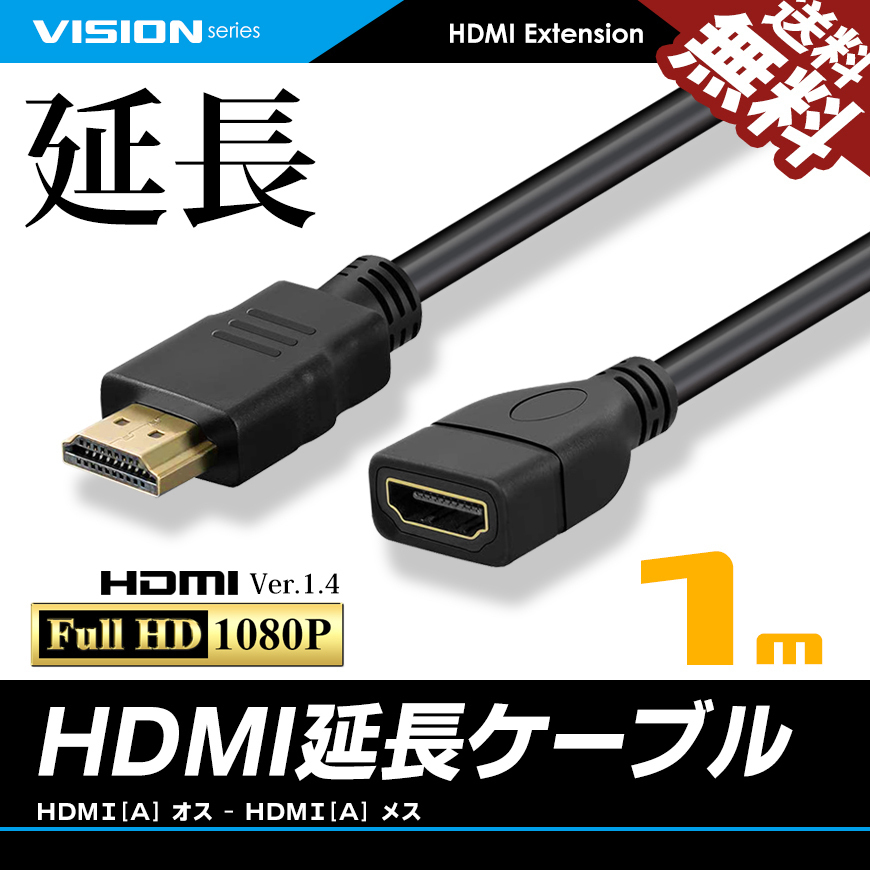 - HDMI延長ケーブル 1m 1メートル Ver1.4 FullHD 3D フルハイビジョン 1080P オス-メス ネコポス 送料無料