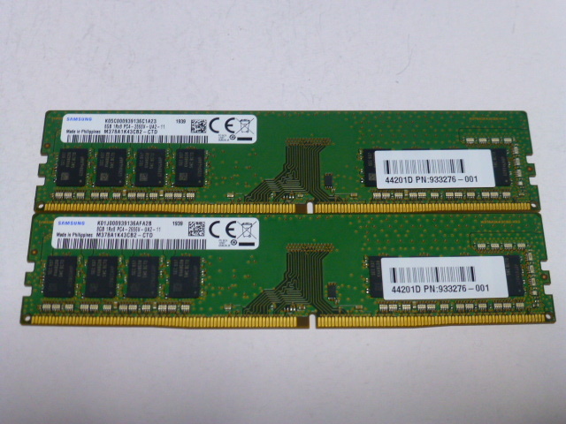 > メモリ デスクトップパソコン用 Samsung DDR4-2666 PC4-21300 8GBx2枚 合計16GB 起動確認済みです