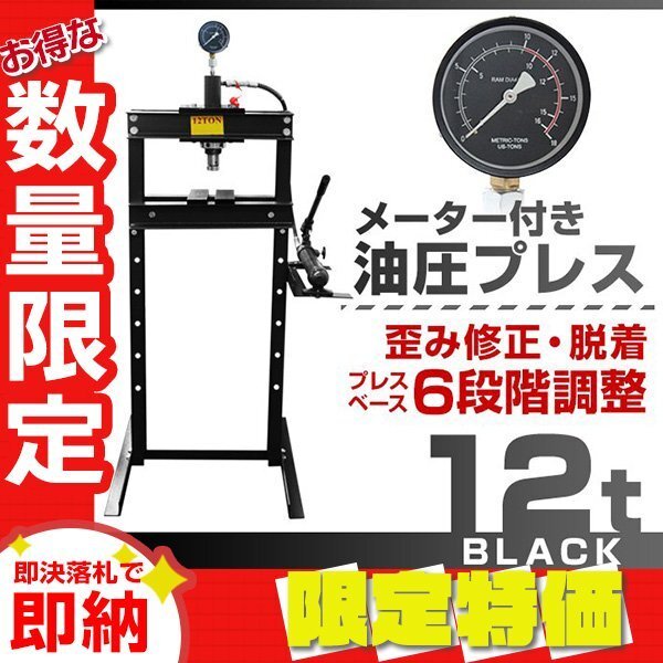 > 【限定セール】新品 メーター付き 門型 油圧プレス 12t 6段階調整 作業幅0~560mm ショッププレス 自動車 バイク 整備 鉄板 板金 歪み修正