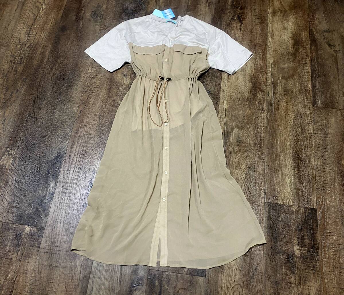 - 福祉バザー &Noel★半袖切り替えロングワンピースMベージュ/新品