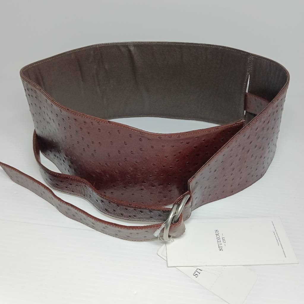 > STUDIOUS ステュディオス オーストリッチダブルベルト レザーベルト 革 ブラウン 未使用 レディース 女性 フリーサイズ
