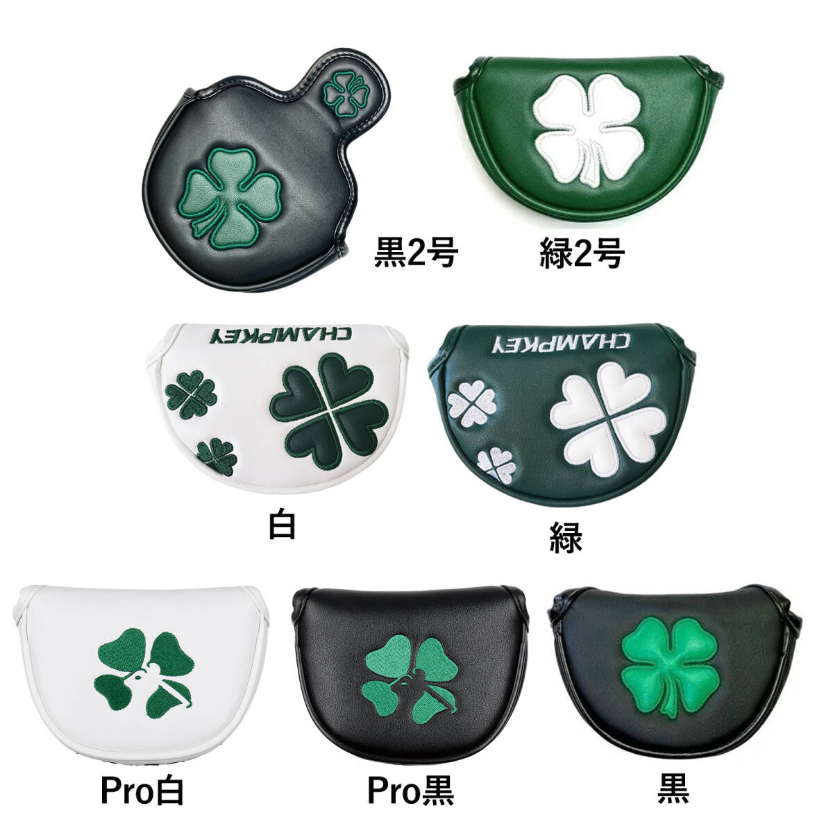 > ゴルフヘッドカバー パターカバー オデッセイに対応 レッド小型マレットタイプ対応 マグネット付け クローバー模様