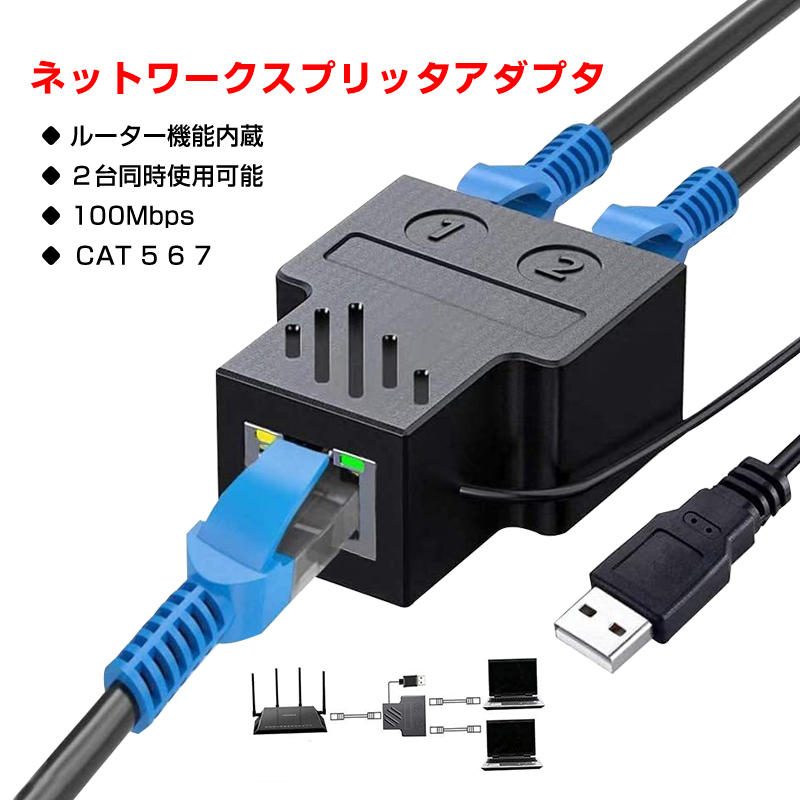 - LAN分岐 100Mbps LANポート増設 拡張 アダプター RJ45 ラン中継コネクタ lanハブ2ポート ルーター ネットワークスプリッタアダプタ カテゴ