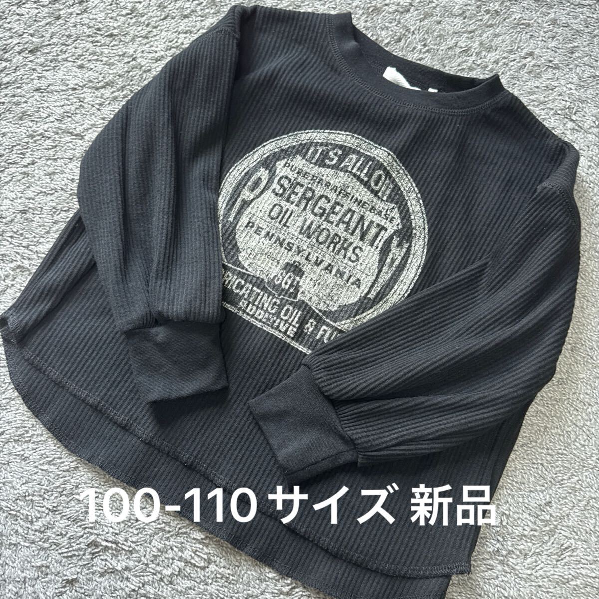 - こども服 ロゴプリント裾ラウンドリブ長袖Tシャツ黒100-110★ゆうパケット配送可能★新品15