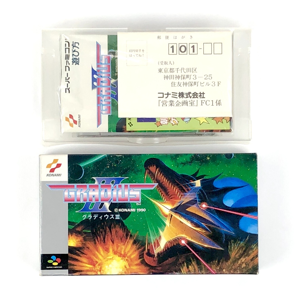 > スーパーファミコン グラディウスⅢ 箱説・チラシ・ハガキ付き 痛みあり 動作確認済 コナミ Super Famicom Gradius Ⅲ CIB Tested Konami