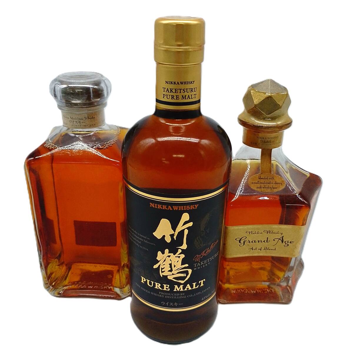 - 未開封 ウイスキー3本セット 竹鶴ピュアモルト 700ml 43%、ザ・ブレンド ラベル剥がれ 660ml 45%、ニッカ グランドエイジ 660ml 45%