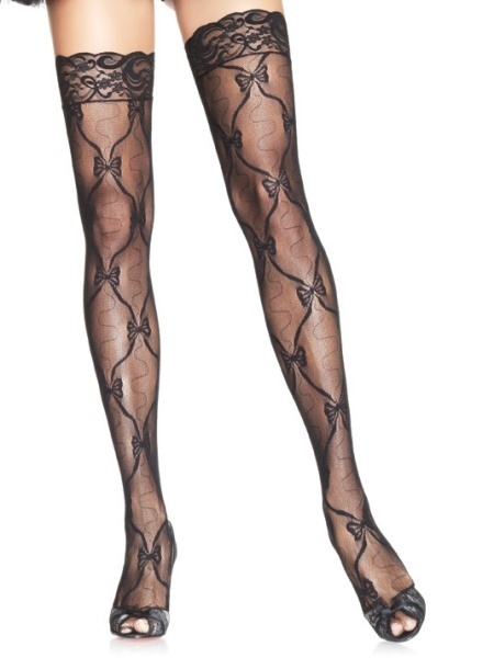 - ST9655◆レッグアベニュー ガーターストッキング レーストップ リボン柄 黒 ワンサイズ(M-L) 新品