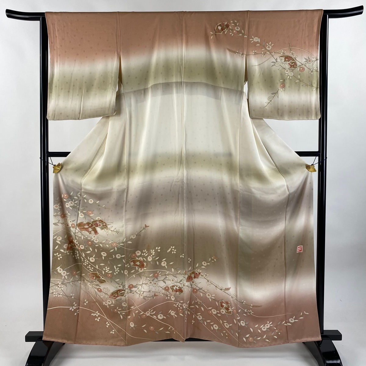 > 訪問着 身丈161.5cm 裄丈63.5cm S 袷 扇面 草花 金彩 ぼかし ピンク 正絹 秀品 【中古】
