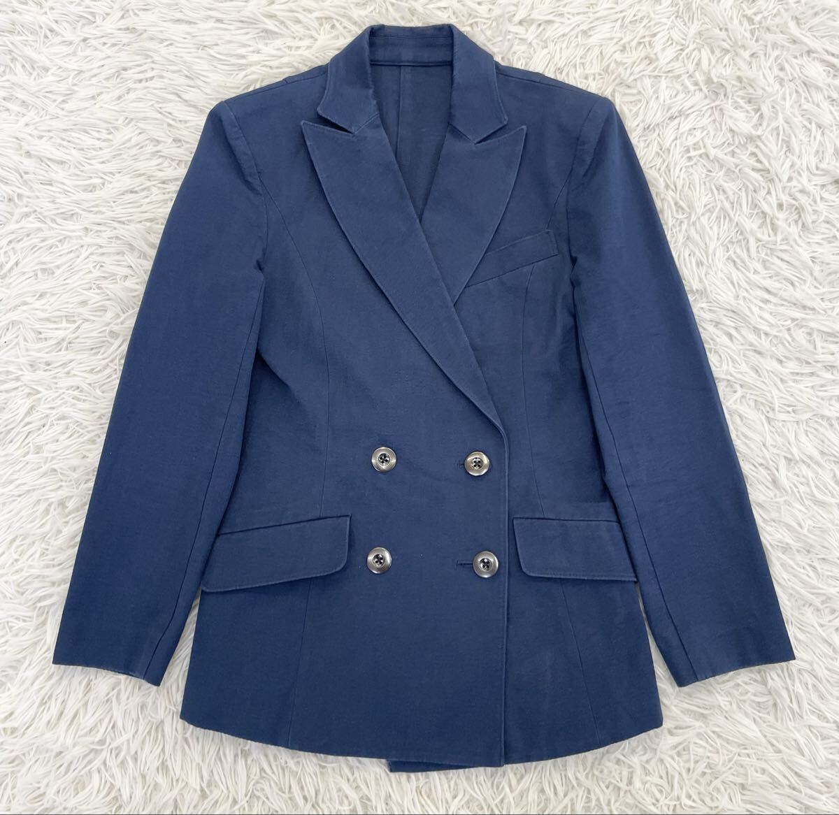 > 美品 TAE ASHIDA ジュン アシダ ストレッチ ダブルブレスト 紺ブレザー ジャケット ネイビー 5号 レディース XSサイズ相当