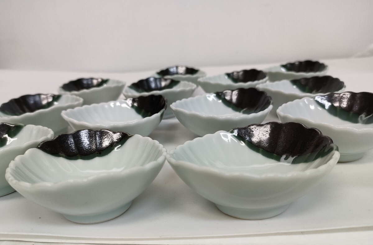 - レトロ 和食器 豆鉢 陶器 径約7.5×8cm 13客まとめて 豆皿 懐石料理 古民家料理 珍味入れ 醤油皿 漬物皿 薬味皿 おつまみ皿 中古