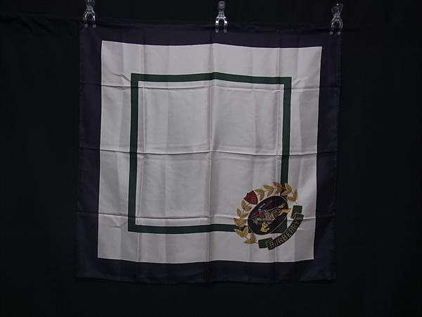 > ■美品■ Burberrys バーバリーズ シルク スカーフ ストール ショール レディース グリーン系×ネイビー系 DJ0482