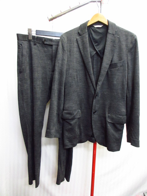 - ナノユニバース イージースーツ上下セットアップ メンズ46 50 グレー リラックスニット地テーラードジャケット&スラックスパンツ10031