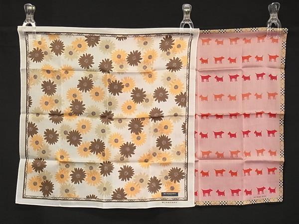 > ■新品同様■ BURBERRY バーバリー コットン100% 花柄 犬 ハンカチ ハンカチーフ 2点セット DI0972