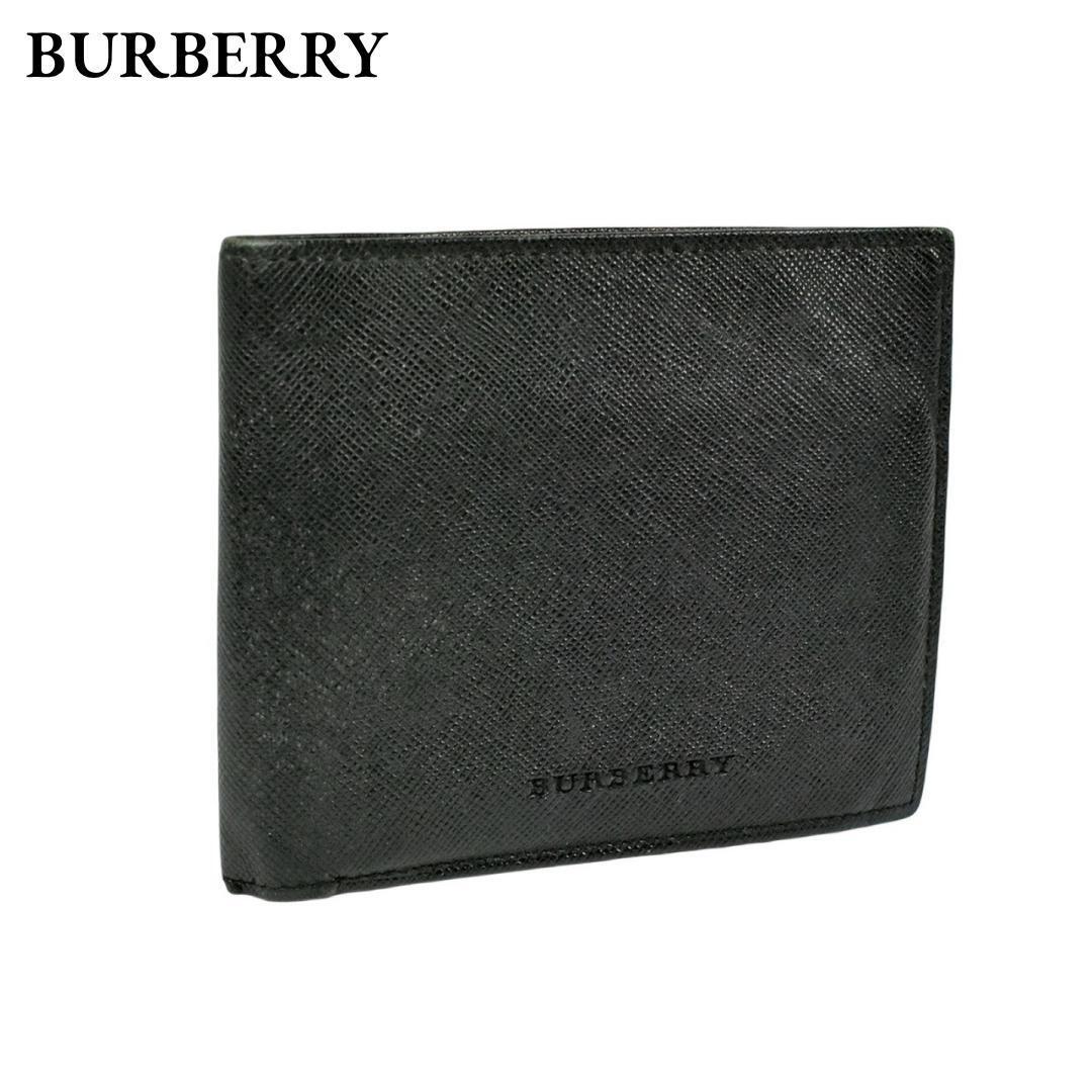 - バーバリー 二つ折り財布 内部ノバチェック レザー ブラック シンプル メンズ ロゴ ウォレット コンパクト 無地 ロゴ