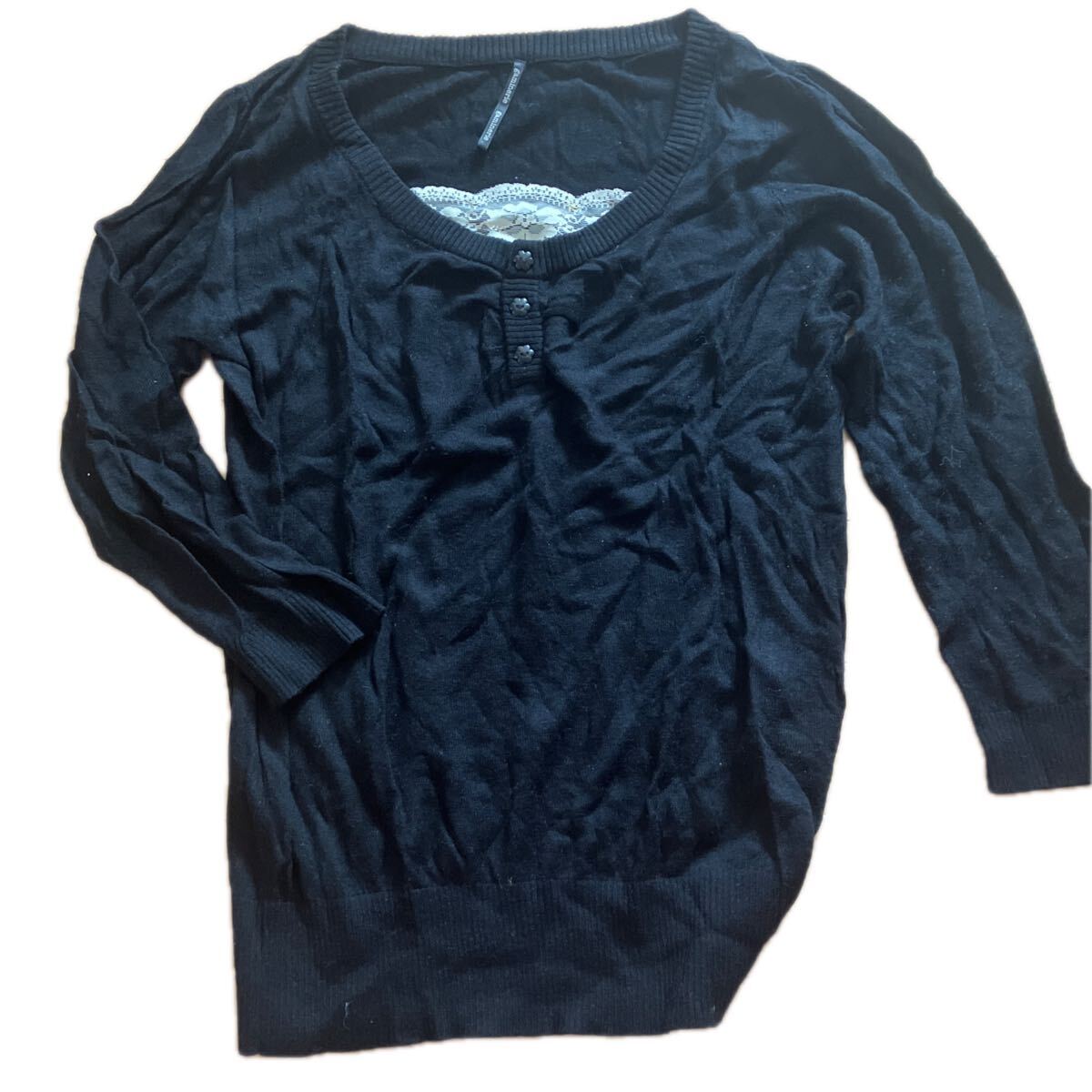 - A① ギャミヌリィ 黒 胸元レース ヘンリーニット セーター ジュン ブラック 七分袖 長袖
