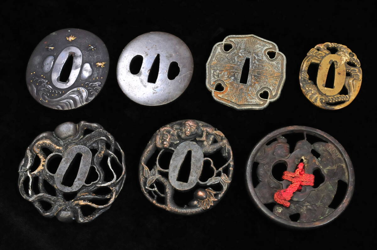 - 【鍔】 銅地鍔7点まとめ 魚々子象嵌 無地脇差用 黄銅脇差用等 ※1点割れ有 刀装具 拵え 日本刀 03408052-7