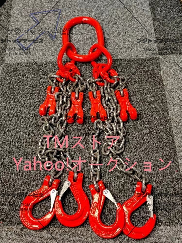 - 品質保証★運搬作業用に チェーンスリング スリングフックタイプ G80マンガン鋼製 使用荷重6t 4本吊り ェーン径8mm 長さ2m 調節器