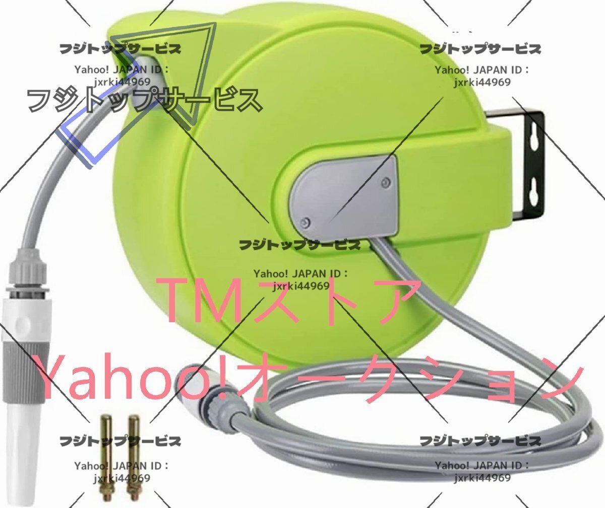 - 壁掛けホースホルダー 120°スイベルブラケット 耐久性 引き込み式 ガーデンホースリールボックス 自動巻き戻し 散水ホース 伸縮ホース