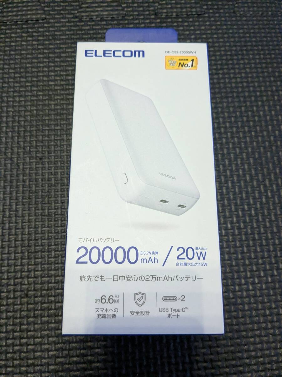 - ◎0710u0942 エレコム モバイルバッテリー 20000mAh 20W USB PD対応 2ポート Type-C ケーブル付属 ホワイト DE-C52-20000WH