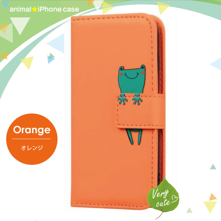 - iPhone12ProMax 専用 アニマルケース オレンジ 動物手帳型 スマホケース レザー カエル 可愛い