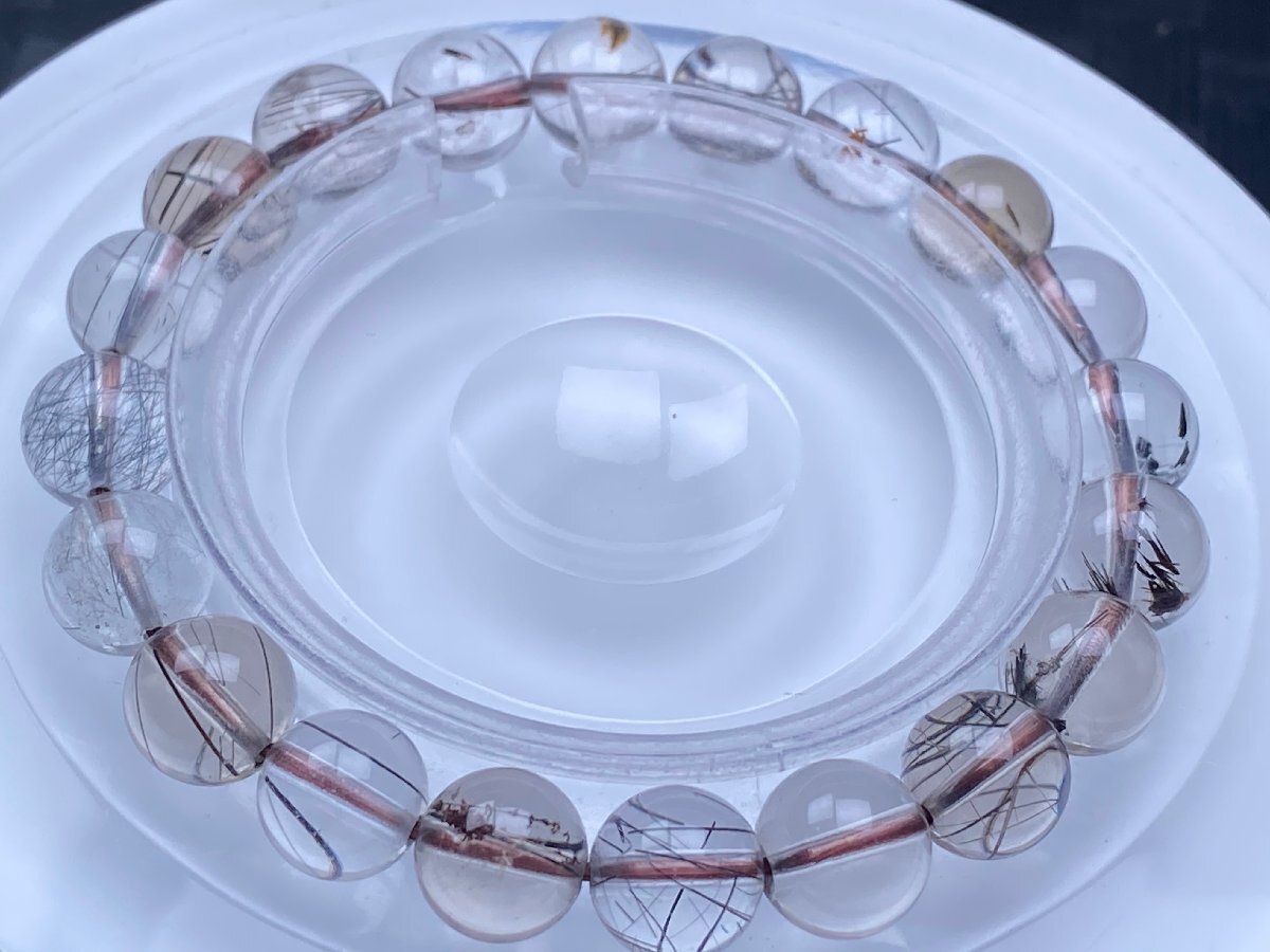 - 即決 0620a115 天然水晶【スモーキーブラックルチル】黒針ブレス 9-9.5mm(新品)