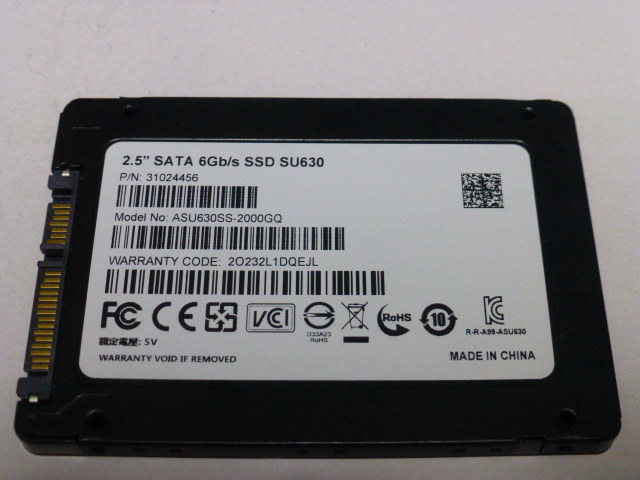 - SSD SU630 SATA 2.5inch 2000GB(2TB) 電源投入回数4回 使用時間0時間 正常100%判定 本体のみ ASU630SS-2000GQ 中古品です①