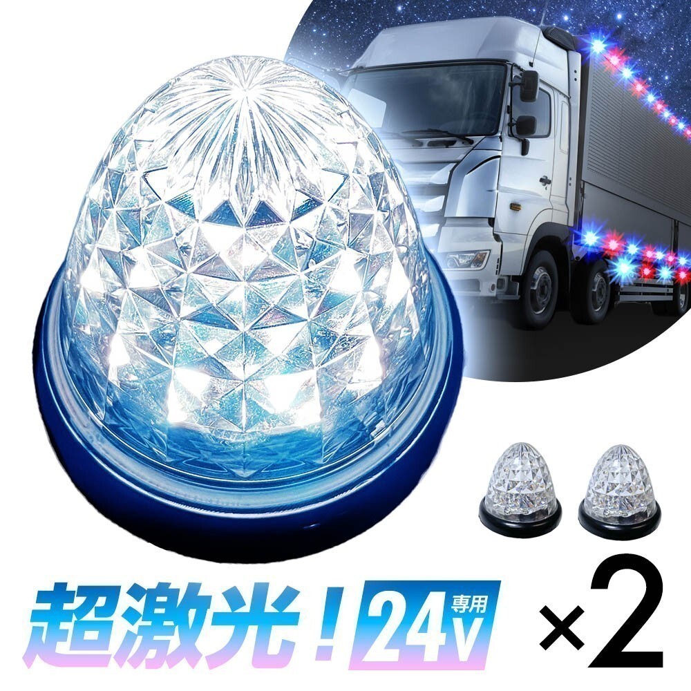 - 16連LED トラック 24v LED 白発光 白 サイドマーカー デイライト 24V マーカーランプ バスマーカー クリスタルカット クリアレンズ 2個set