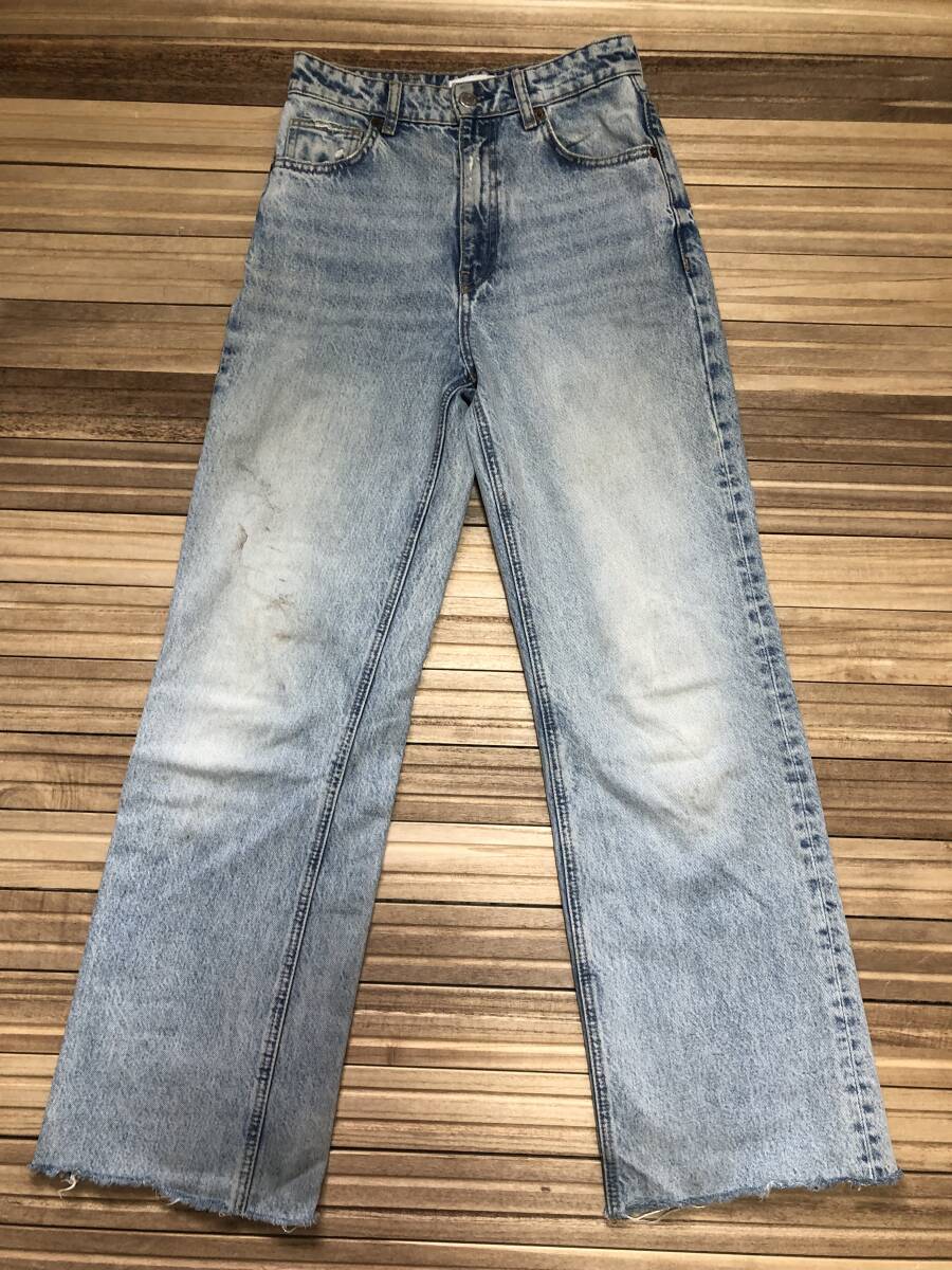 - ZARA ワイドストレートダメージウォッシュ加工デニムパンツ ザラ Lサイズ