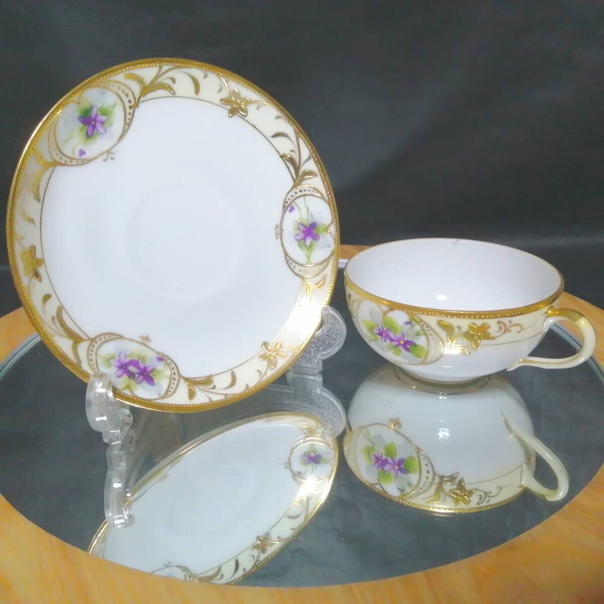 - オールドノリタケ◆里帰り ハンドペイント 金盛 スミレ カップ&ソーサー 1-3
