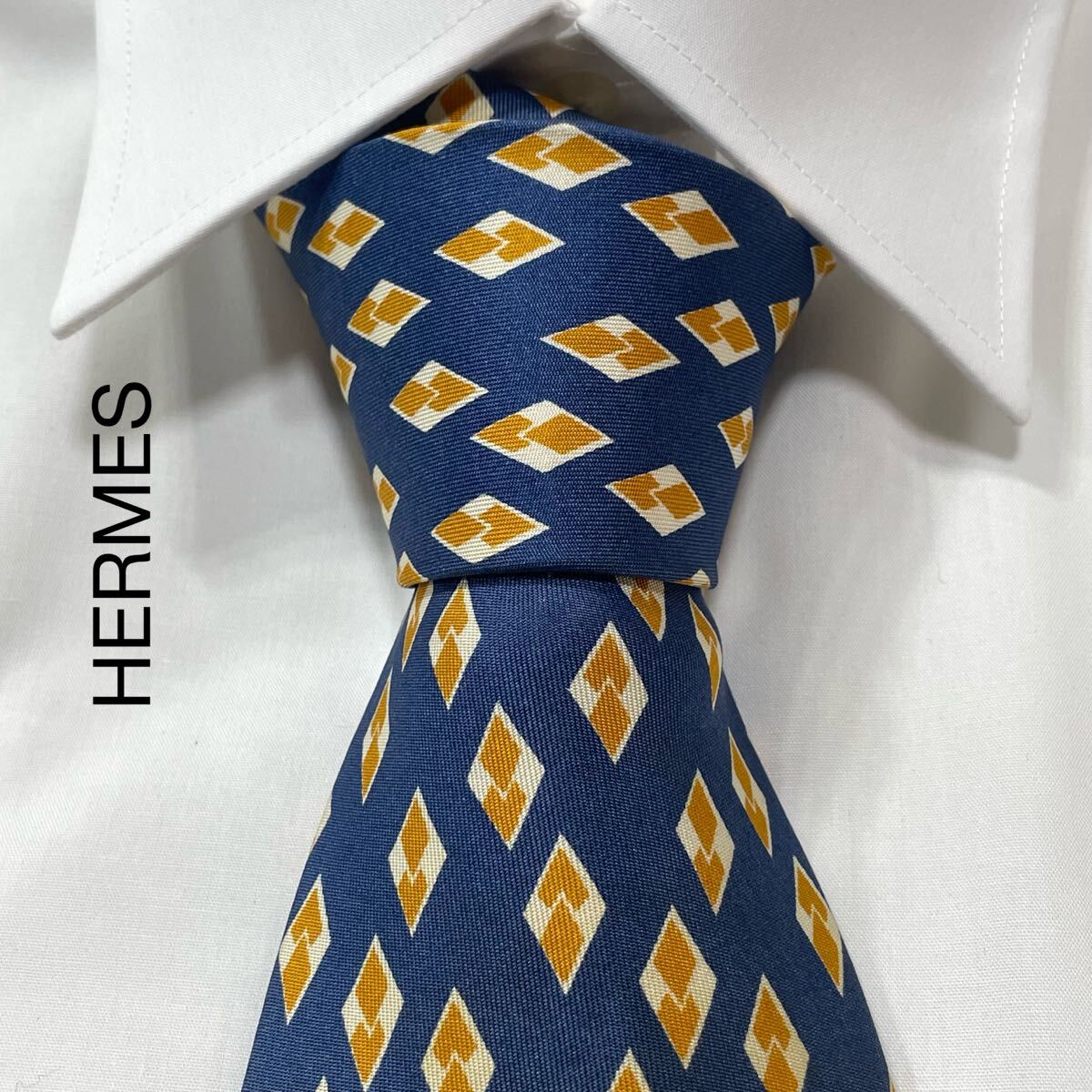 - HERMES エルメス パターン柄 シルク ネクタイ フランス製 ブルー TG2955