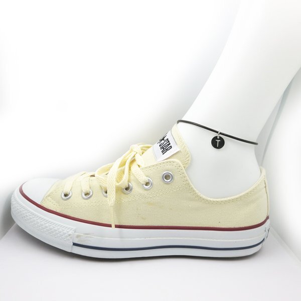 - T レザーアンクレット イニシャルチャーム付き ラウンド型 ステンレス金具 26cm(22+4cmアジャスター)