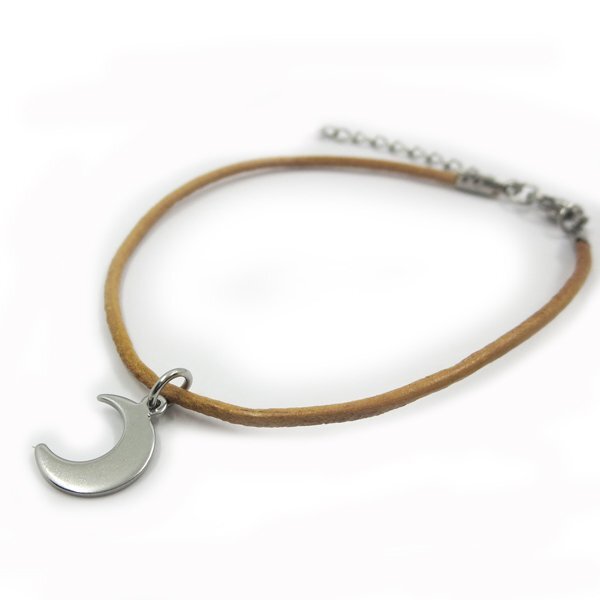 - レザー 革紐 アンクレット三日月チャーム付き ステンレス金具 27cm(23cm+4cmアジャスター)