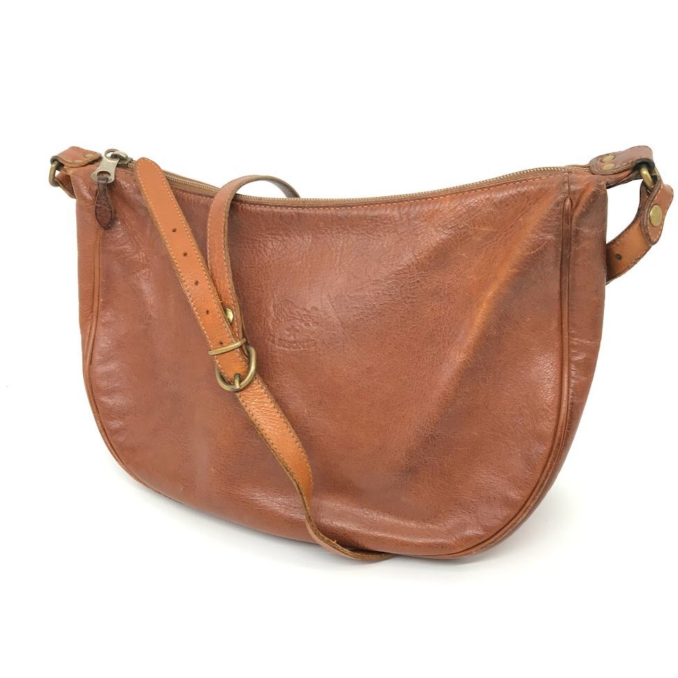 > [121-1212]IL BISONTE | イルビゾンテ Crescent Moon Style Leather Shoulder Bag ショルダーバッグ 411758 ブラウン