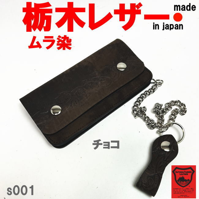 - チョコ 日本製 トラッカーウォレット 長財布 栃木レザー 本革 牛革 チェーン付 無骨な品格を