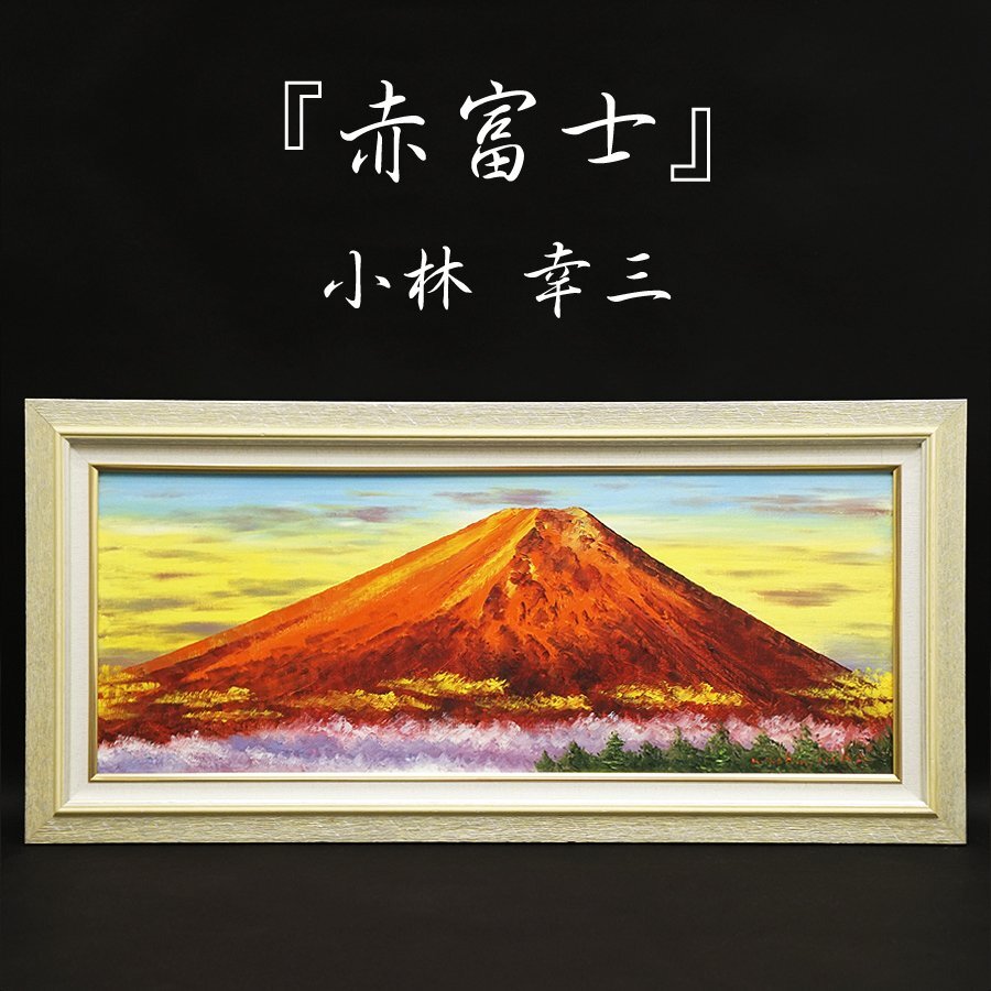 - 小林幸三『赤富士』 油彩 油絵 絵画 額装 肉筆画 裏書きサイン有 風景画 自然画 美術 芸術 アート 真作保証品