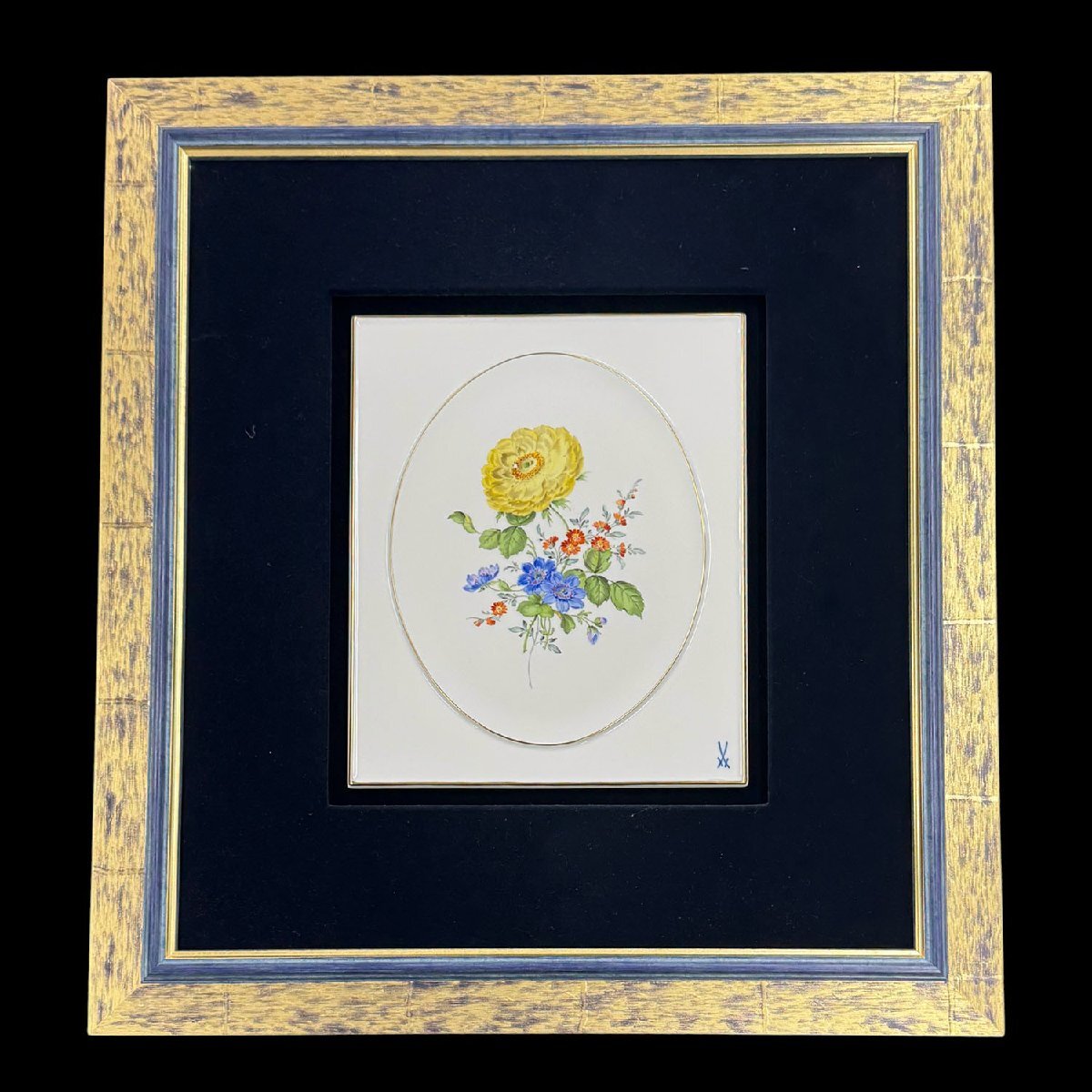 - Meissen マイセン ベーシックフラワー 三つ花 陶板画 プラーク 額装 箱付 ※同梱不可 06-3998682