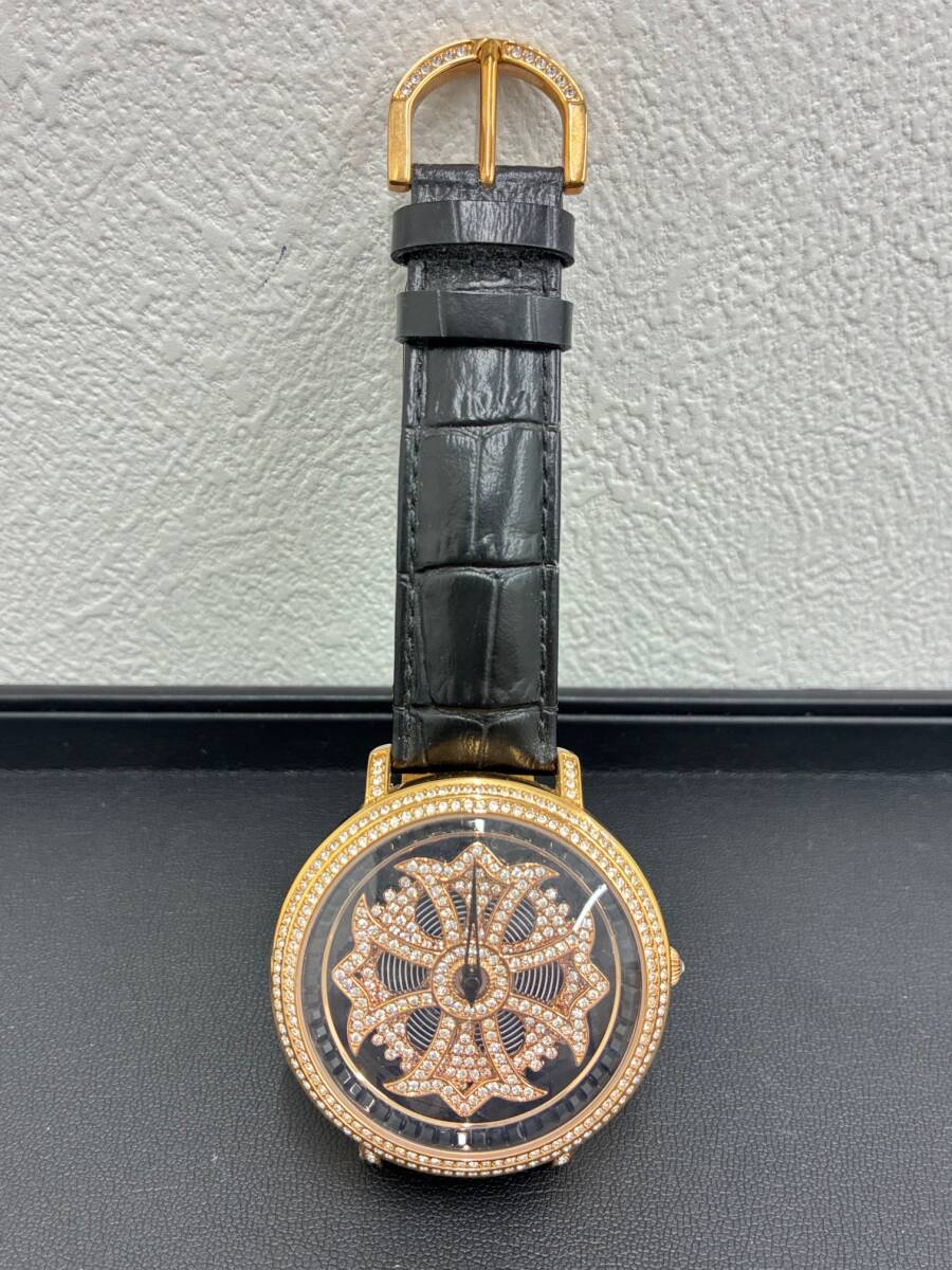 > ★【美品】Anne Coguine アンコキーヌ メンズ腕時計 クロス ゴール色ドベゼル 文字盤動き 石付き コレクション 不動品 箱無し★ №15