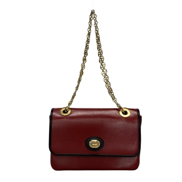 - グッチ GUCCI ショルダーバッグ 576421 インターロッキングG レザー レッド×黒 チェーンショルダー バッグ