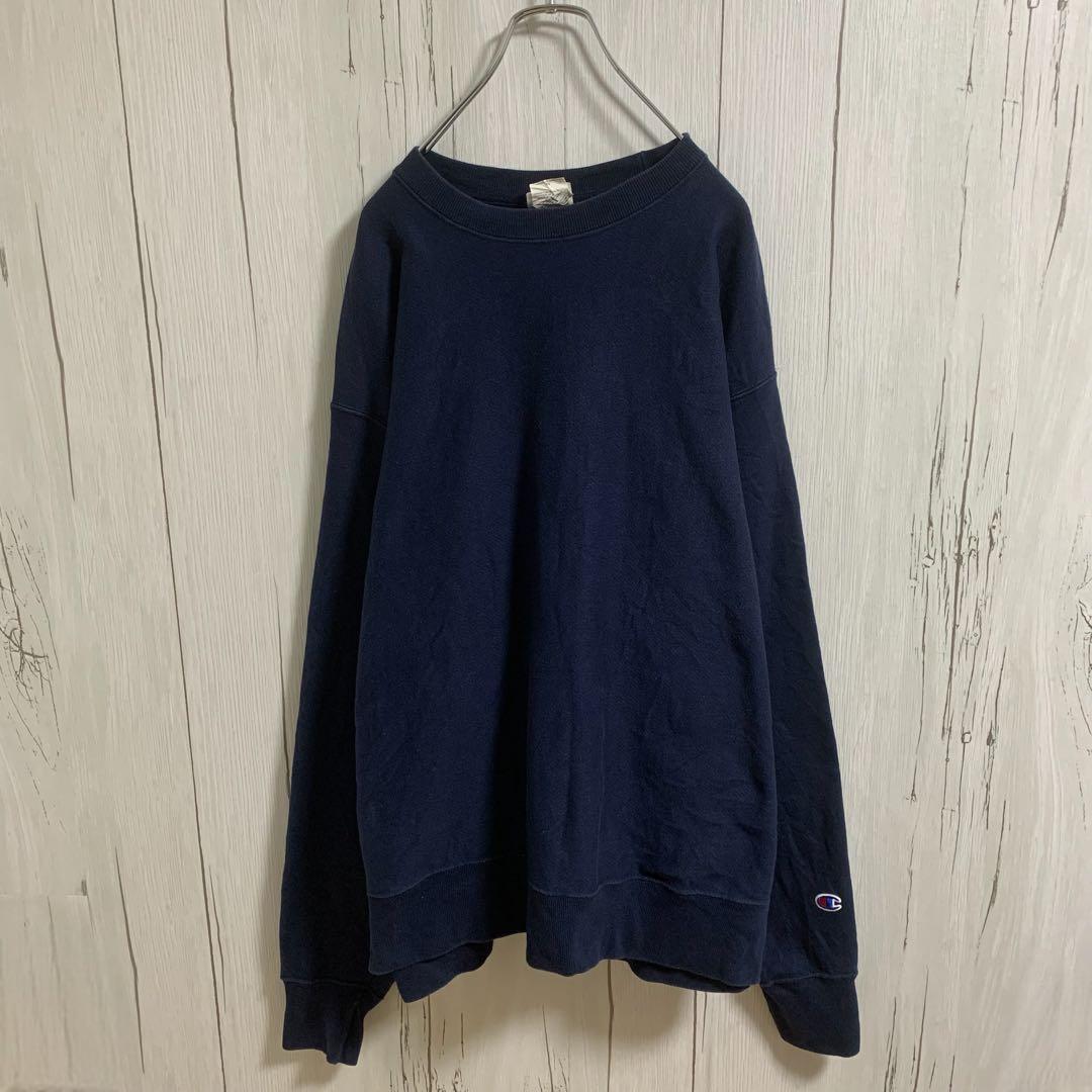 - Champion チャンピオン リバースウィーブ 目なし スウェット トレーナー 刺繍 紺 ネイビー 単色青タグ