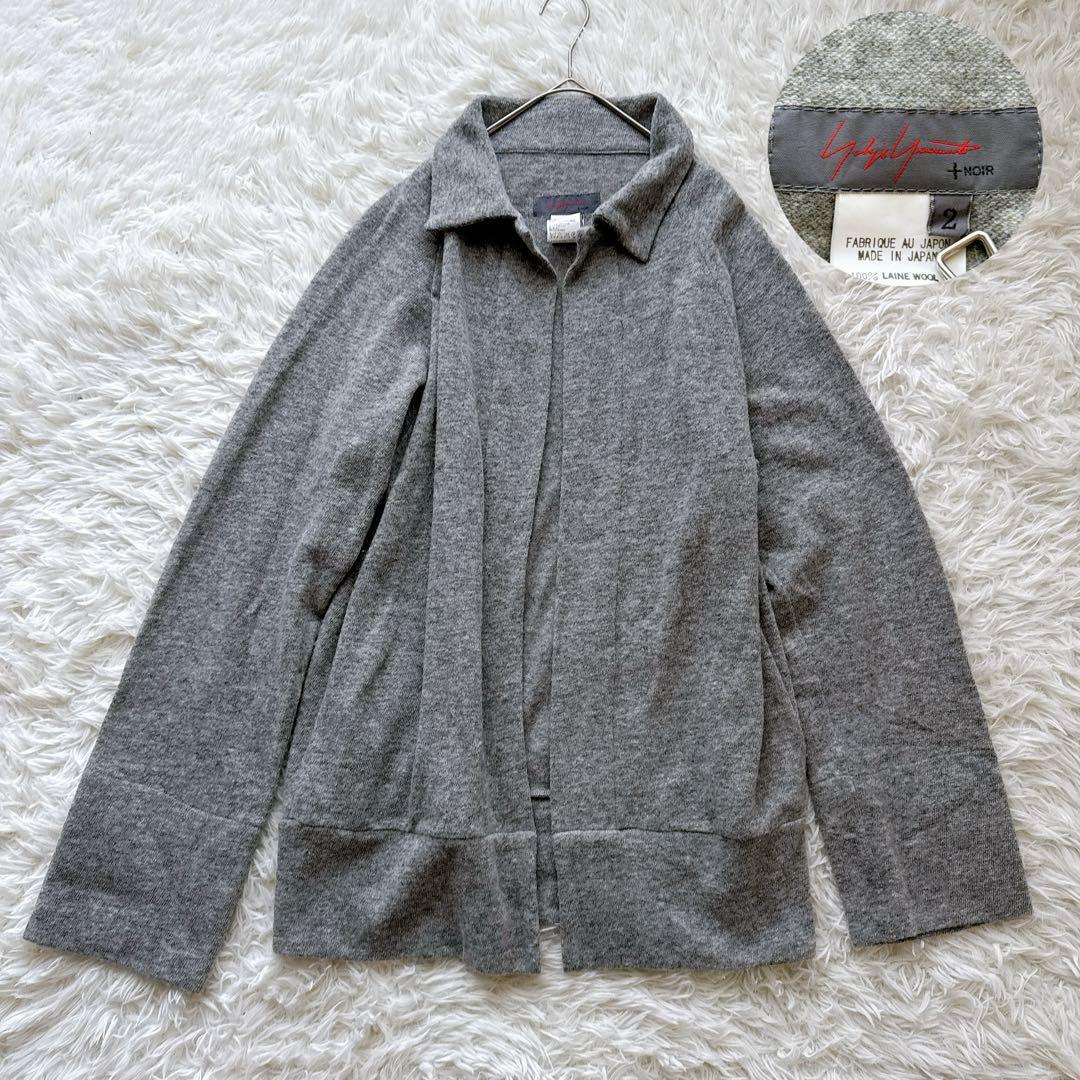 - 希少 Yohji Yamamoto +Noir ヨウジヤマモトプリュスノアール ガウンカーディガン ノーボタン 襟デザイン 羽織り グレー デザイナーズ
