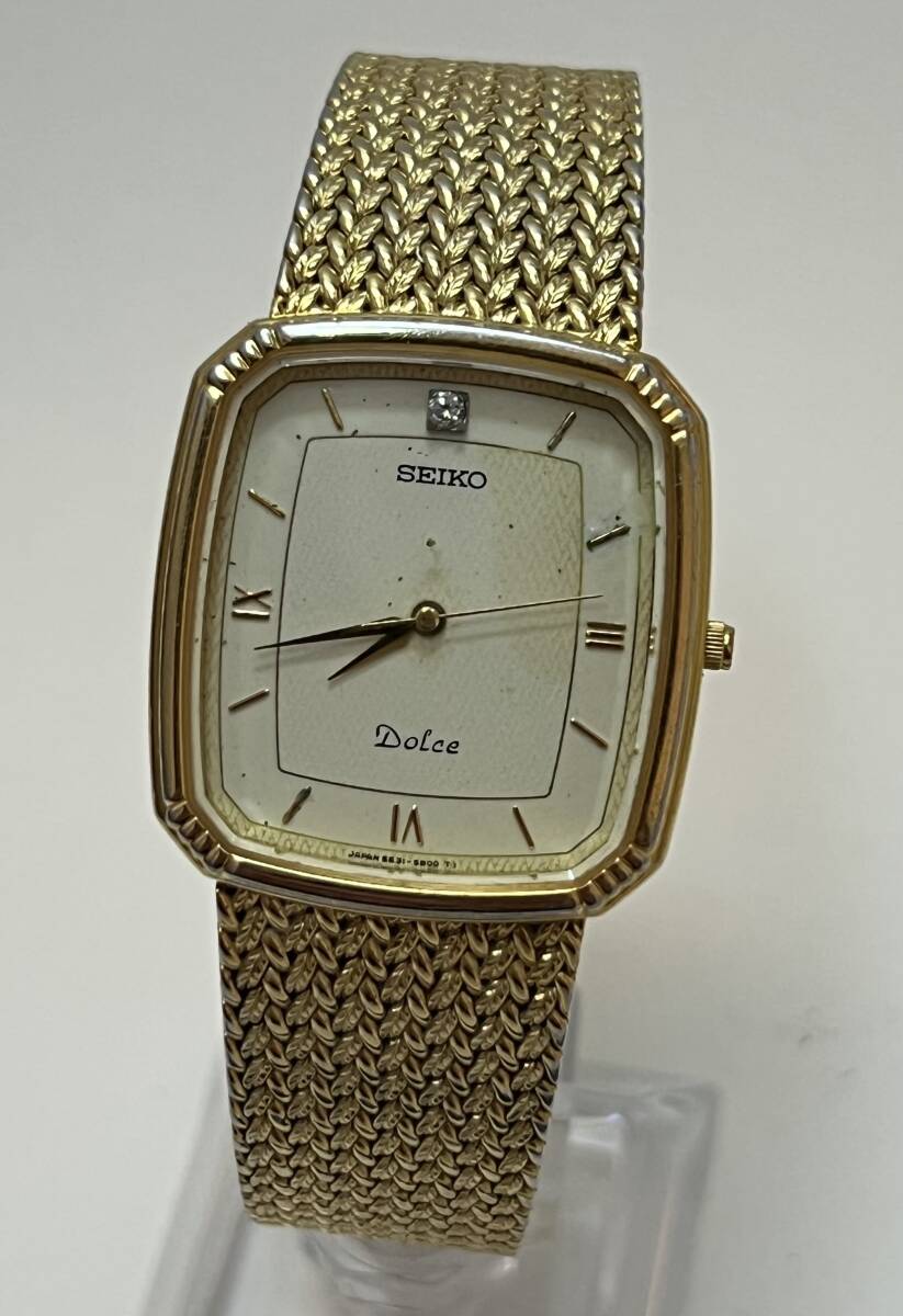 > 動作未確認 SEIKO セイコー 5E31-5A90 DOLCE ドルチェ メンズ 腕時計 クォーツ 3針 スクエア 1P 石付