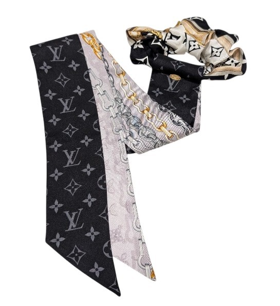 - 新品同様 ルイヴィトン スカーフ シュシュ モノグラム チェーン ブラック ビーマインドフル VUITTON 【中古】